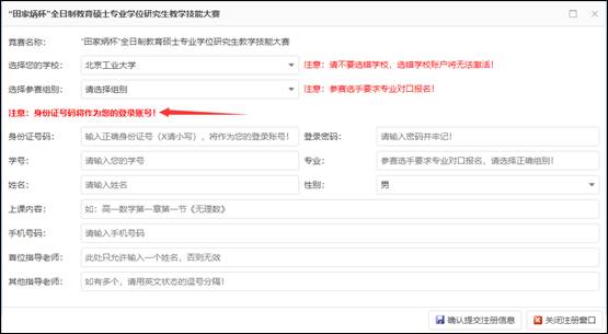 4. 进入注册页面,输入相关信息后点击“确认提交注册信息”,需注意,身份证号码将作为您的登录账号;