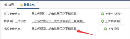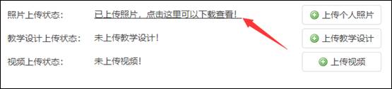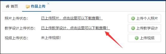 点击“作品上传”,右侧显示作品上传状态,作品需上传个人照片、教学设计、视频。
